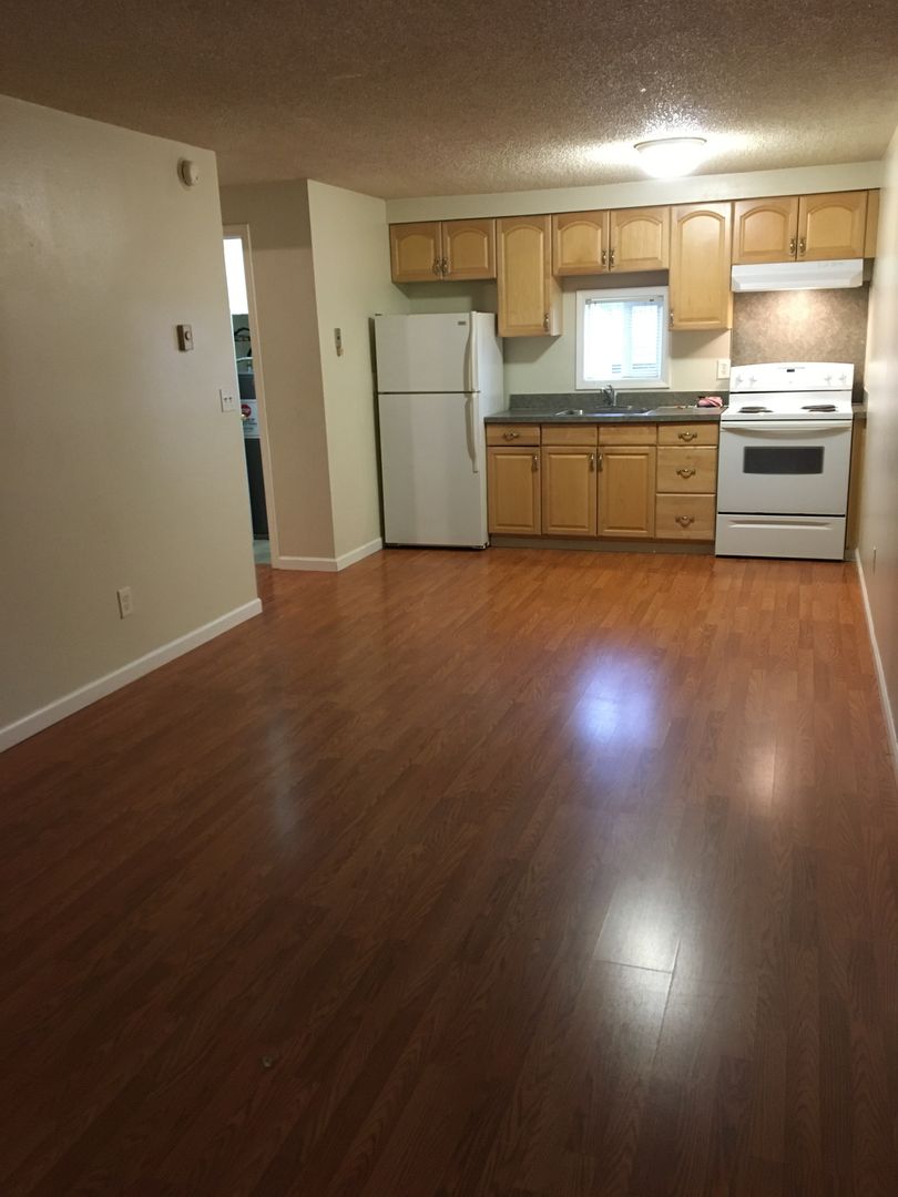 Welcome to Springate Apartments, your new home in Springfield, OR. This 1 bedroom, 1 bathroom upstairs unit is conveniently located near downtown Springfield, offering easy access to a variety of shopping options. The apartment features hardwood plank flooring, adding a touch of elegance and durability to your living space. The on-site laundry facility ensures your laundry days are breeze, while the off-street parking space provides added convenience. Plus, with the apartment being on a bus line, commuting to work or exploring the city is a breeze. Experience the great blend of comfort at Springate Apartments.