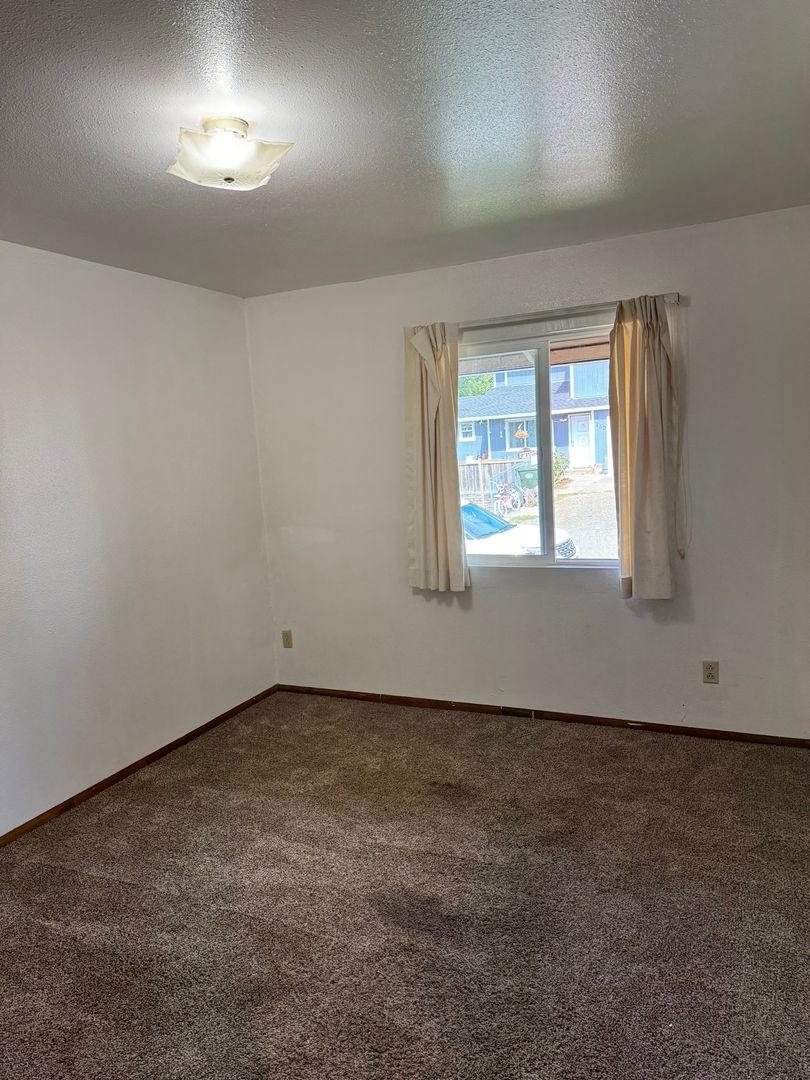 Welcome to the charming two bedroom, one bath Junction City Duplex! This cozy home features a laundry space with washer and dryer, a ductless heat pump in the living room for year-round comfort, a range/oven, refrigerator, and window coverings for added privacy. Enjoy the convenience of a yard area. One small pet is considered in this lovely duplex, making it the perfect place for you and your furry friend to call home. Located in the heart of Junction City, OR, this duplex offers a peaceful and comfortable living space for you to relax and unwind. Don't miss out on this fantastic opportunity to make this duplex your new home sweet home!